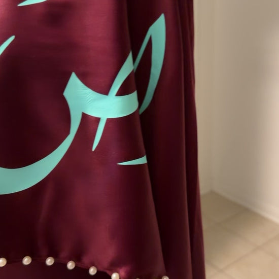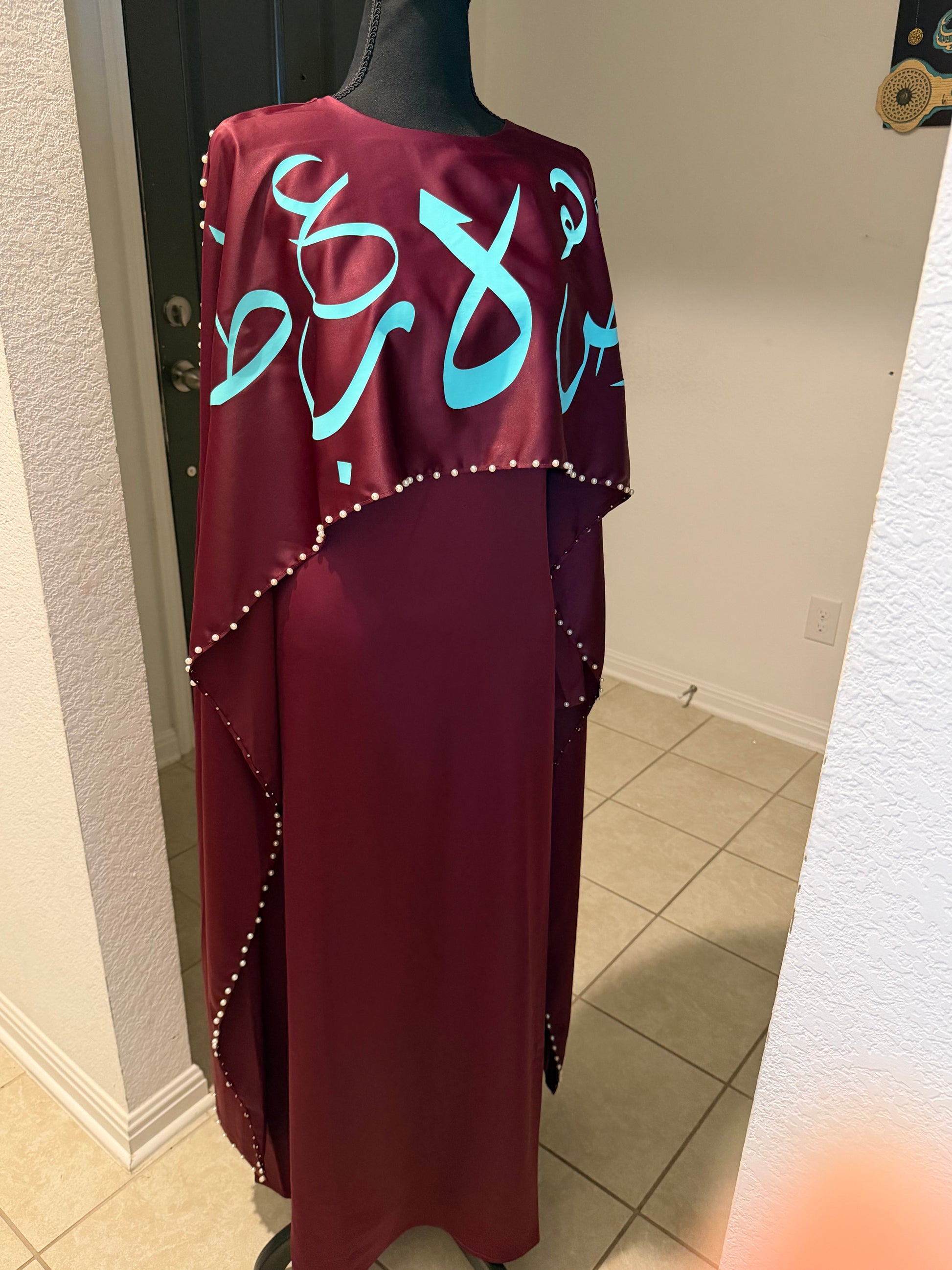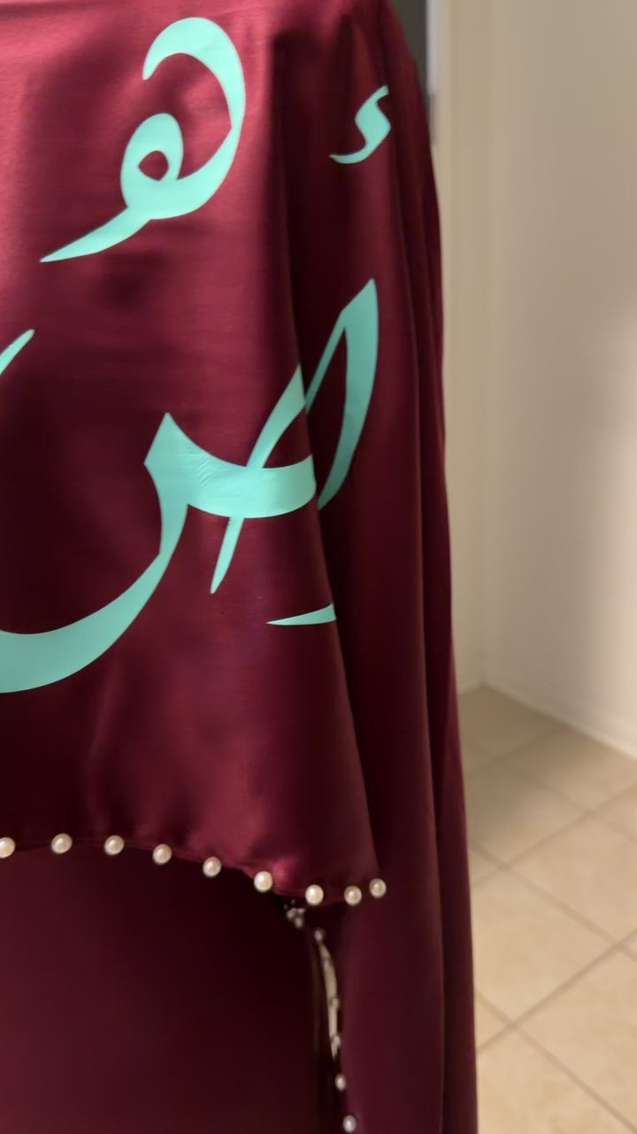 A combination of pearls and calligraphy takes the abaya to whole different levels