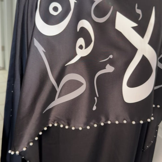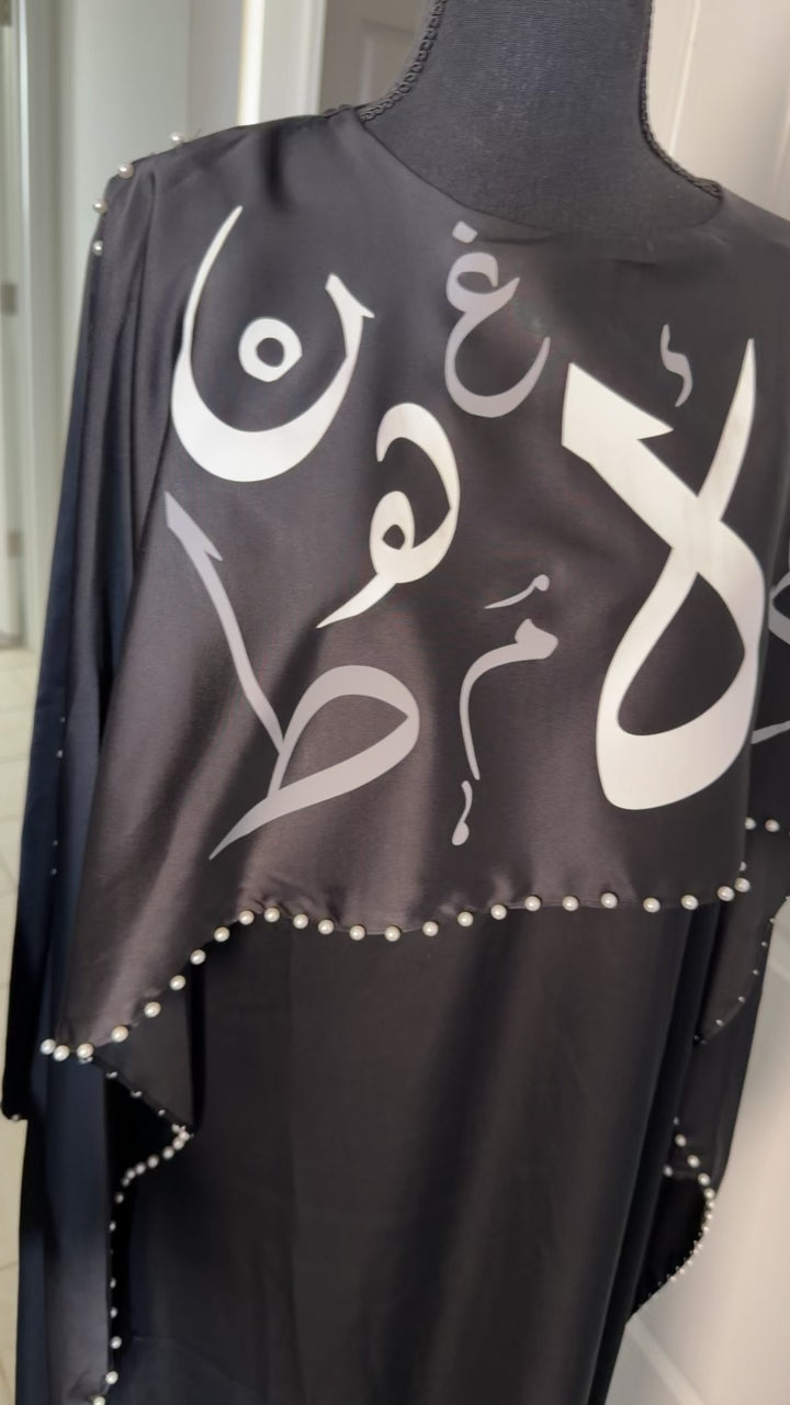 A combination of pearls and calligraphy takes the abaya to whole different levels