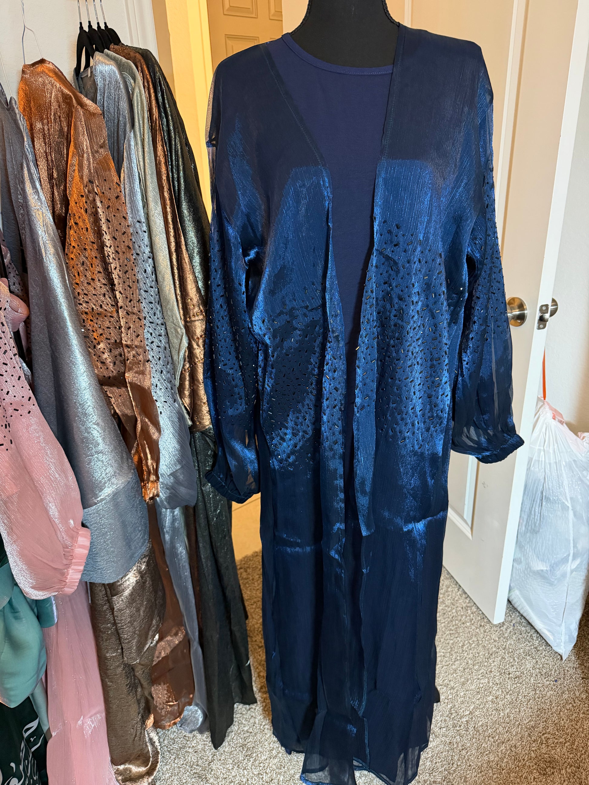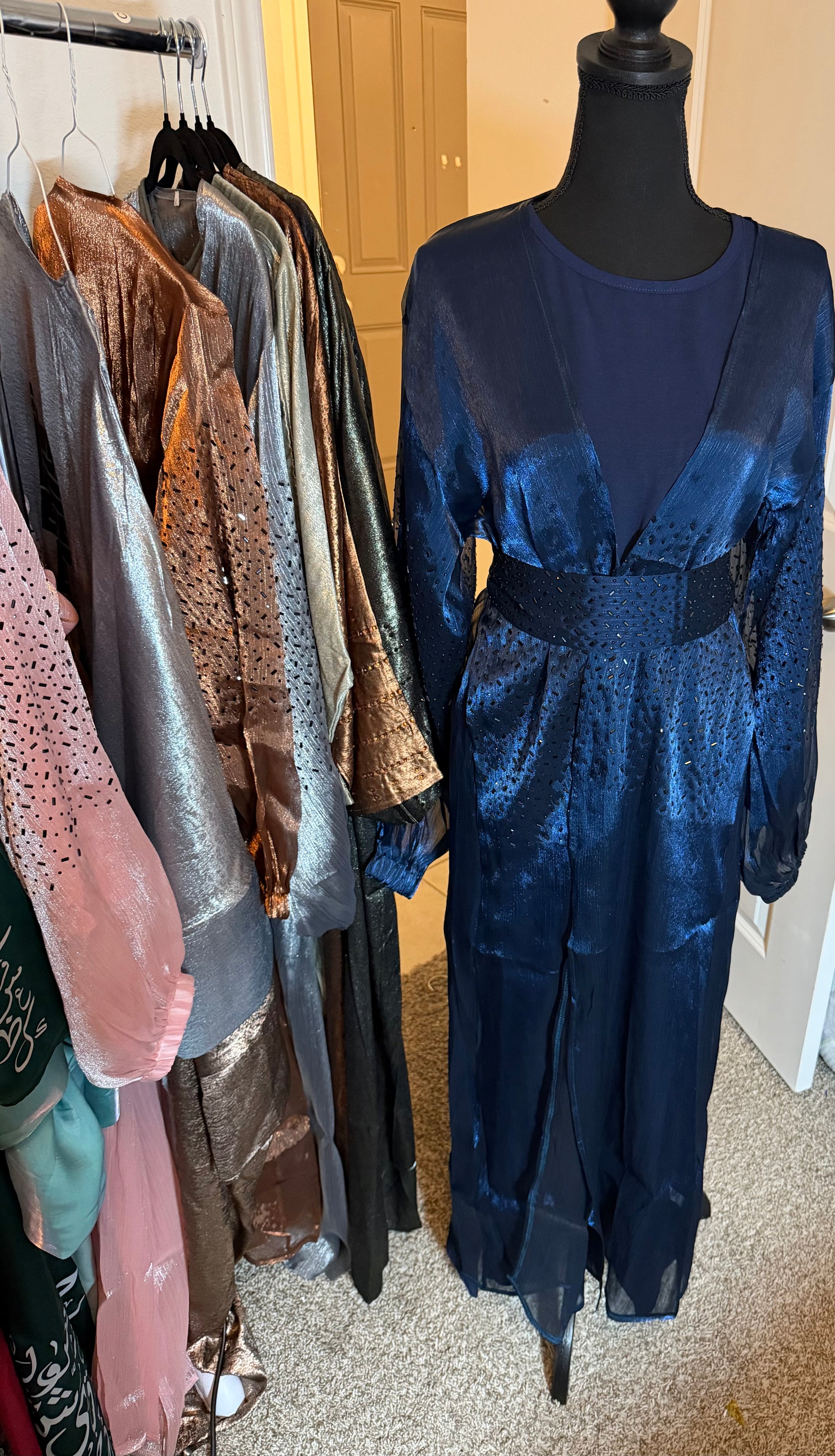 The abaya comes as a two-piece set, featuring a matching inner layer and a detachable belt that allows you to style it loose for a relaxed look or cinched for a more defined waist. Perfect for day-to-day wear, special gatherings, or Ramadan evenings, this piece blends comfort with timeless sophistication.